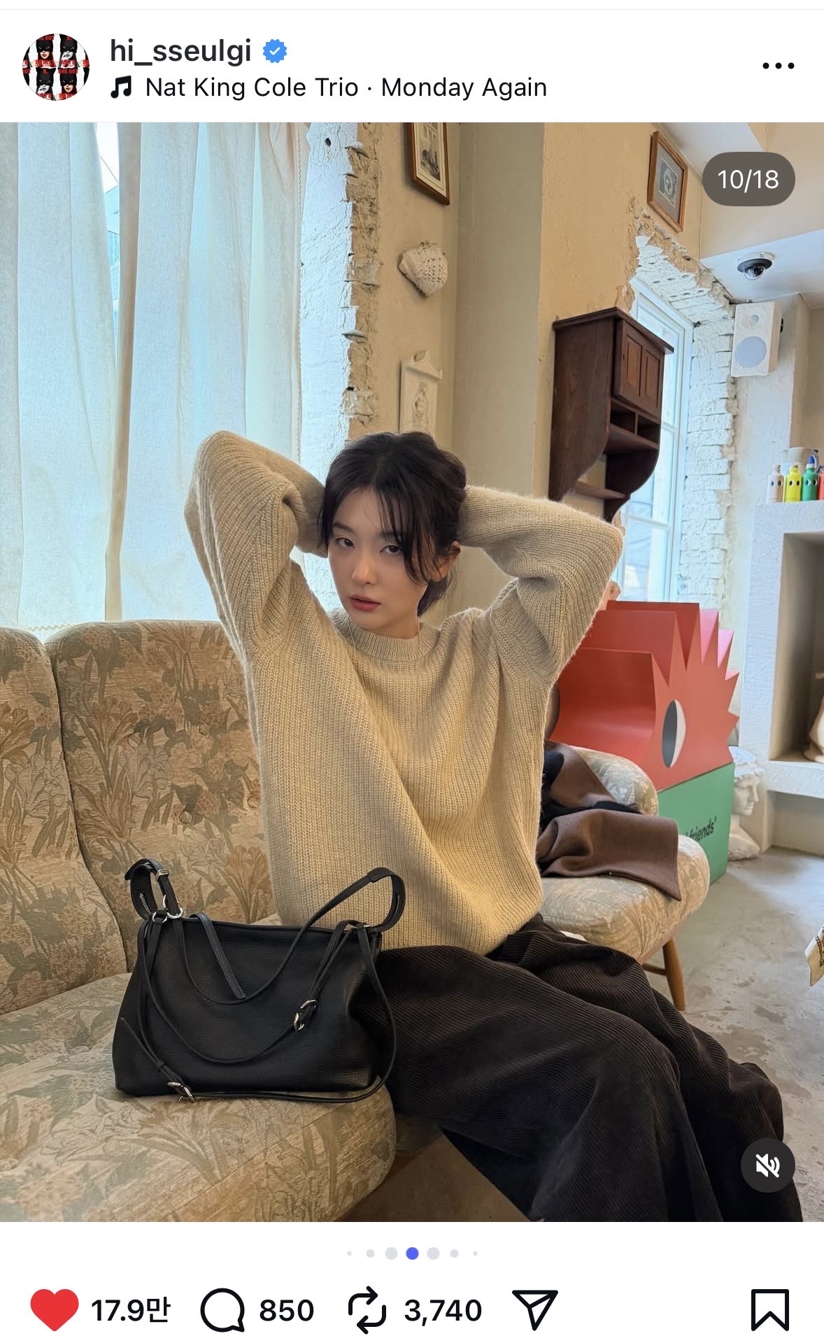 너무 잘 어울리고 루에브르 가방까지 넘 느낌있지 않니...늘 손민수 욕구 뿜뿜하게 하는 슬기.....❤️