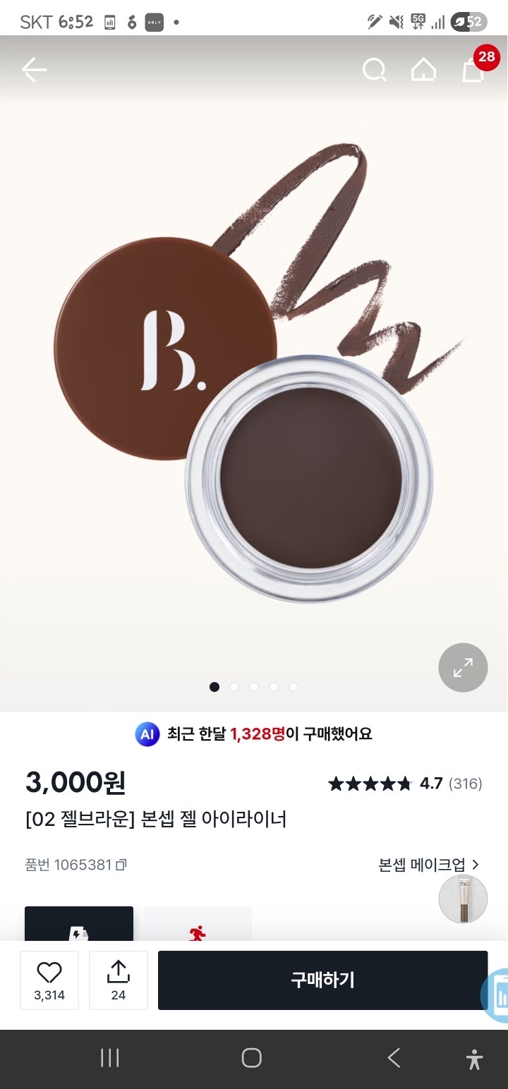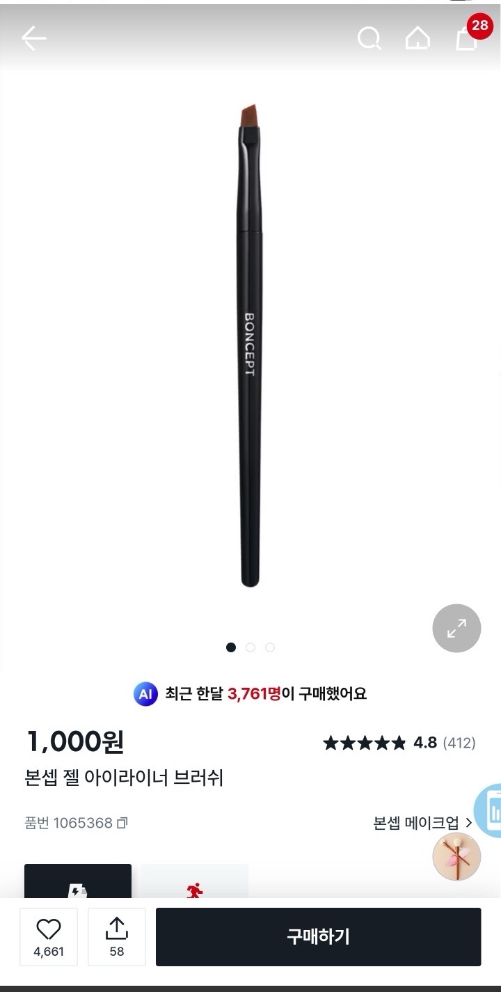 본셉 젤 아이라이너 브러쉬 개인적으로 다이소 핑크팝 브러쉬보다 훨 좋은 듯