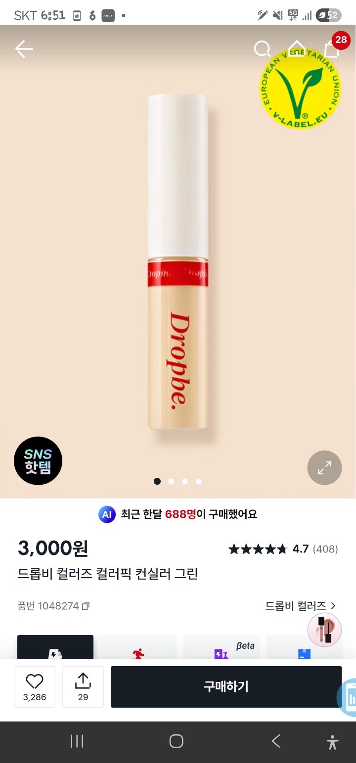 컨실러는 드롭비 그린이 스킨색 살짝 섞여서 자엽스럽게 붉은기 커버 잘 됨!!
