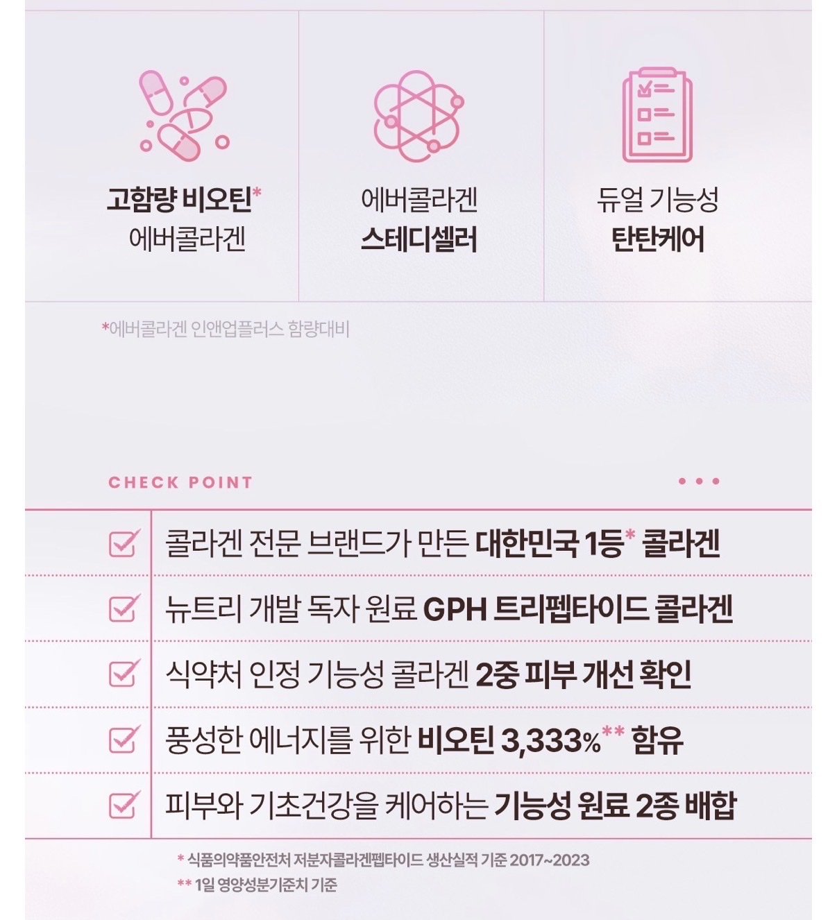 비오틴 함량은 높은 편이라 머리카락이랑 손톱 신경 쓰일 때 같이 챙기기 좋고, 저분자 콜라겐 100% 들어가 있어서 흡수도 괜찮은 느낌이야.
