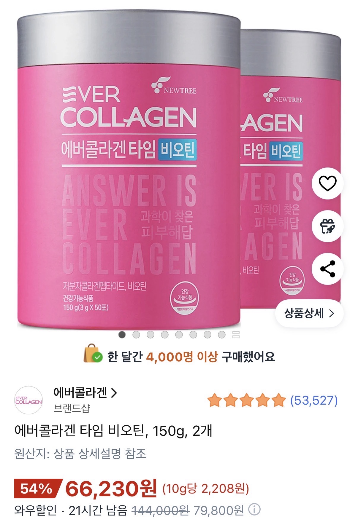 #개이득에버콜라겐 타임비오틴 100포 2통 66230원 무배 - 속닥