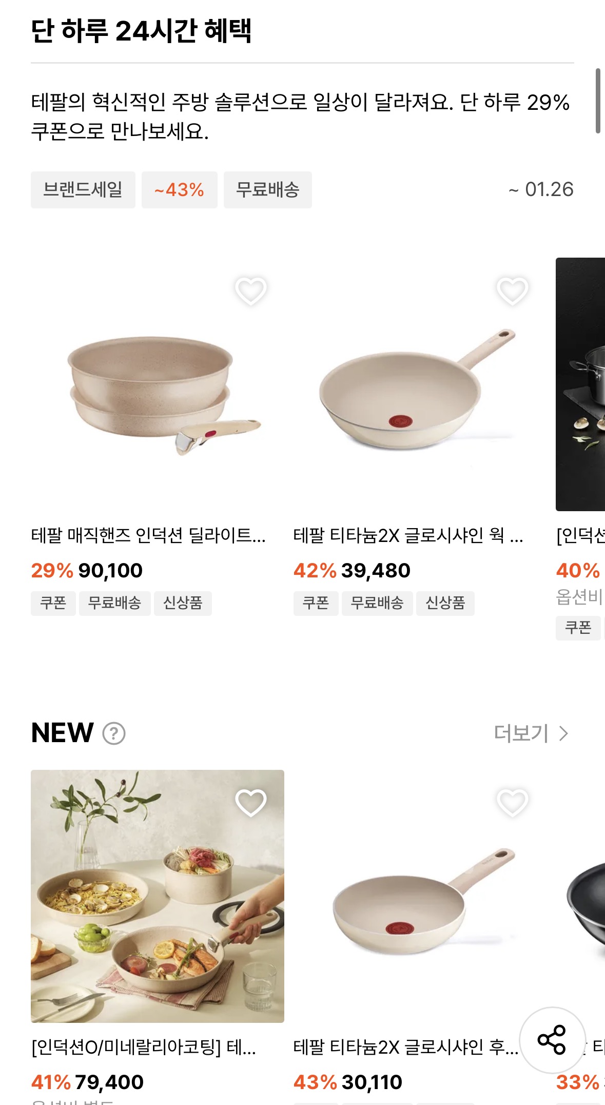 한샘은 10퍼쿠폰 주고 테팔은 29퍼!!