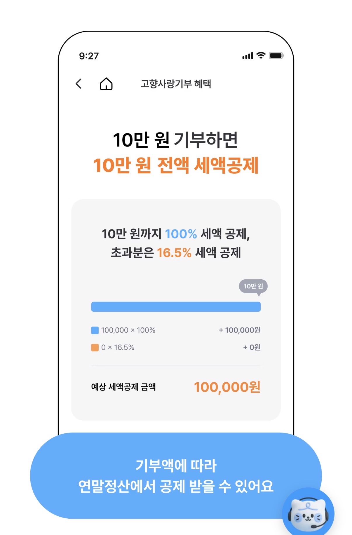 나중에 연말정산에서 10만원 그대로 돌려줌!