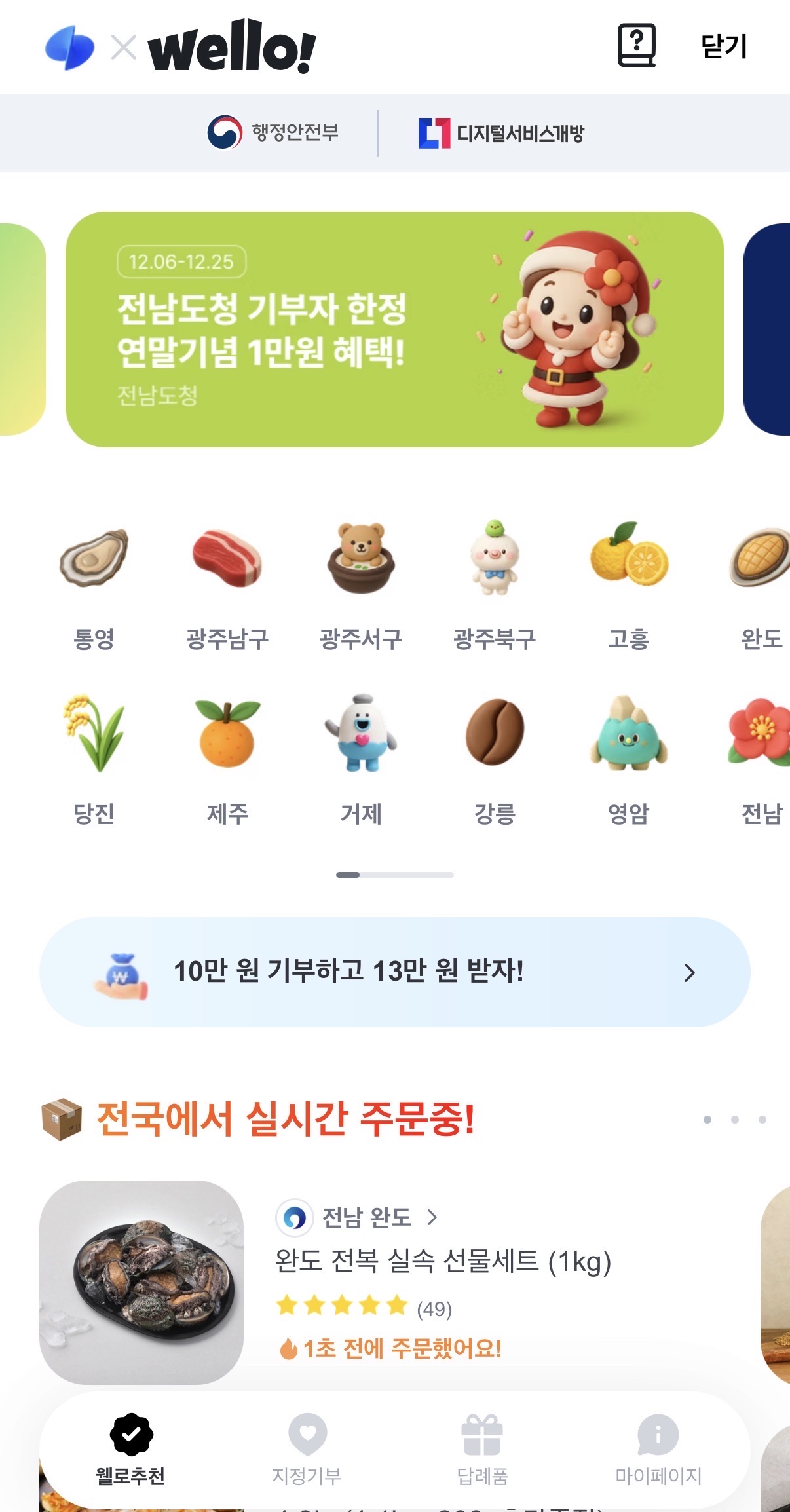 그리고 돈 쓴거 30%(최대3만원치)는 답례품으로 받을 수 있어! 답례품 직접 선택 가능